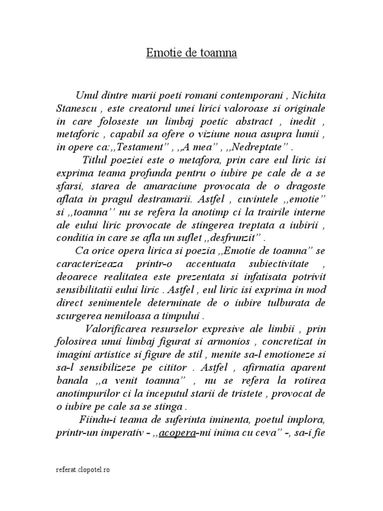 Emoţie De Toamnă Nichita Stănescu Limbasiliteraturaromanasite