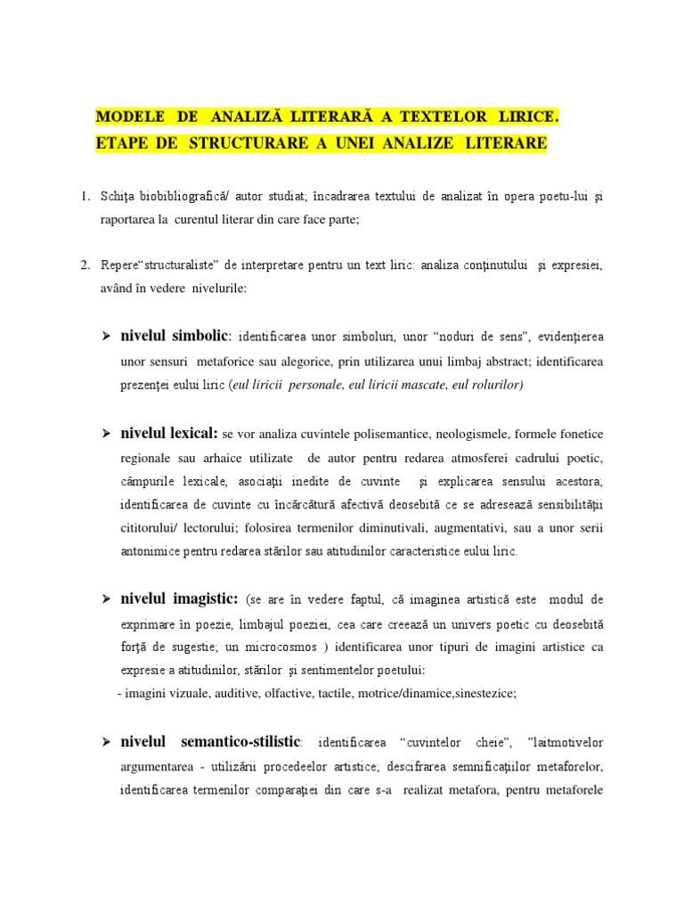 Modele De Analiză Literară A Textelor Lirice Etape De Structurare